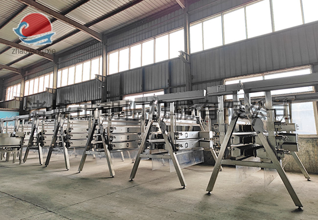 A字型立式精脫毛機(jī)是大中型家禽屠宰企業(yè)生產(chǎn)中使用的主要設(shè)備之一,與A字型立式粗脫毛機(jī)在生產(chǎn)過程中需配合使用,效果才能達(dá)到好。設(shè)備具有提高企業(yè)生產(chǎn)效率,降低企業(yè)人工成本,操作簡單,便于維護(hù),屠宰效果好等優(yōu)點(diǎn),設(shè)備一經(jīng)問世,便受到大中型家禽屠宰企業(yè)的廣泛歡迎。